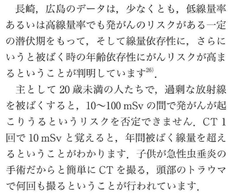 つまり、レントゲンとかCTスキャンなどで患者が被曝することが多く、特に日本ではあまりに気軽に診察で被曝させていると警告しています.