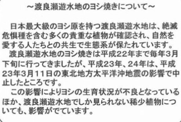 渡良瀬遊水池はラムサール条約に登録されている湿地で「環境保護」が行われています。そのため毎年「葦焼き」が行われますが、福島原発事故のために葦が放射性物質で汚染されています。その葦を焼却するという事になっています。埼玉大学の二人の教授が「専門家」として登場しています。