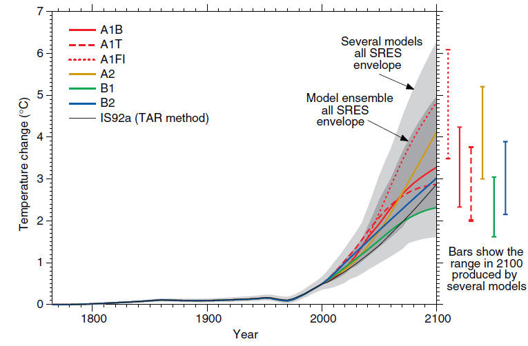 ところが、ここに政治が入り込み、この奇妙なグラフを「政治的に採用」してしまった。そして「100年後は・・」という誰にも真偽がわからない予測がでて、社会を覆ってしまった。